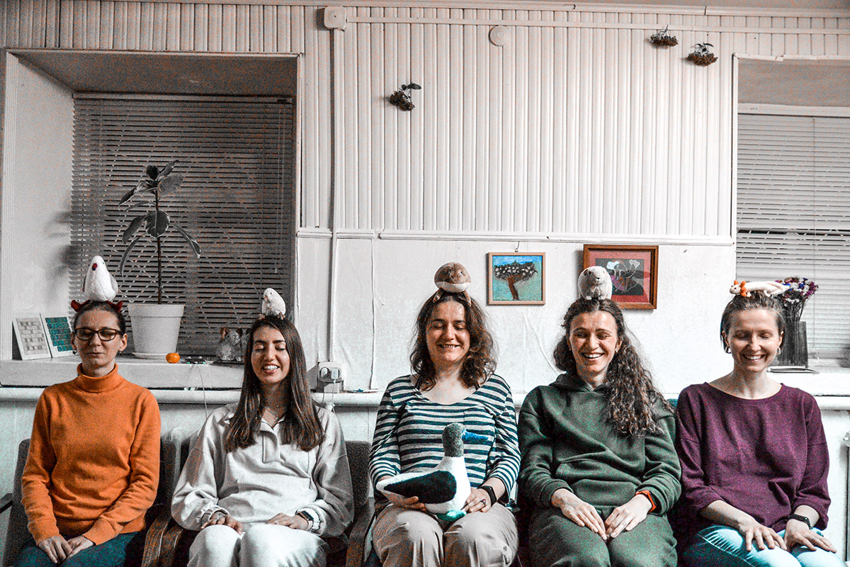 — Співоча майстерня почалася з двох дівчат, які підійшли до мене після концерту проєкту «Шляхетно» і сказали, що теж хочуть так співати. Потім почали долучатися то одна, то дві, і зараз у нас уже існує три групи: дихальна, звукова й пісенна. Із початківцями й середнім рівнем ми більше від часу присвячуємо співочому диханню, звуку, відчуттю свого голосу, як добуть і зрозуміть цей звук у собі, а старша, пісенна група — це люди, які вправно співають, із якими можна вже працювати глибше над саме особливостями певної традиції співу. Майстерня існує від 2017 року з перервами на два дєторождєнія. Дівчата там дуже різні, але коли пройшов, мабуть, рік нашого співу, усі дуже подружилися.
